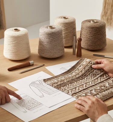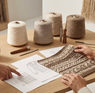 Our collaborations extend across the Andean communities where these practices are living traditions. We work side-by-side with master knitters and emerging makers to maintain dignified work, to safeguard knowledge transmission, and to apply sustainable methods that respect both people and place. Ethical sourcing, careful lot-control, and thoughtful sampling ensure color fidelity and material honesty from the first swatch to the final garment.