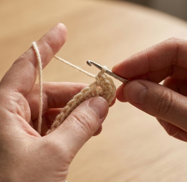 We privilege hand work above all. From delicate hand-knitting and refined crochet to the precise interventions of artisanal knitting machines, each gesture matters: the tension of the yarn, the rhythm of the stitch, the subtle adjustment that turns a sample into a lasting form. Hand-embroidery and manual finishing are applied where nuance and individuality are required, ensuring every piece carries a maker’s signature impossible to reproduce at scale.
